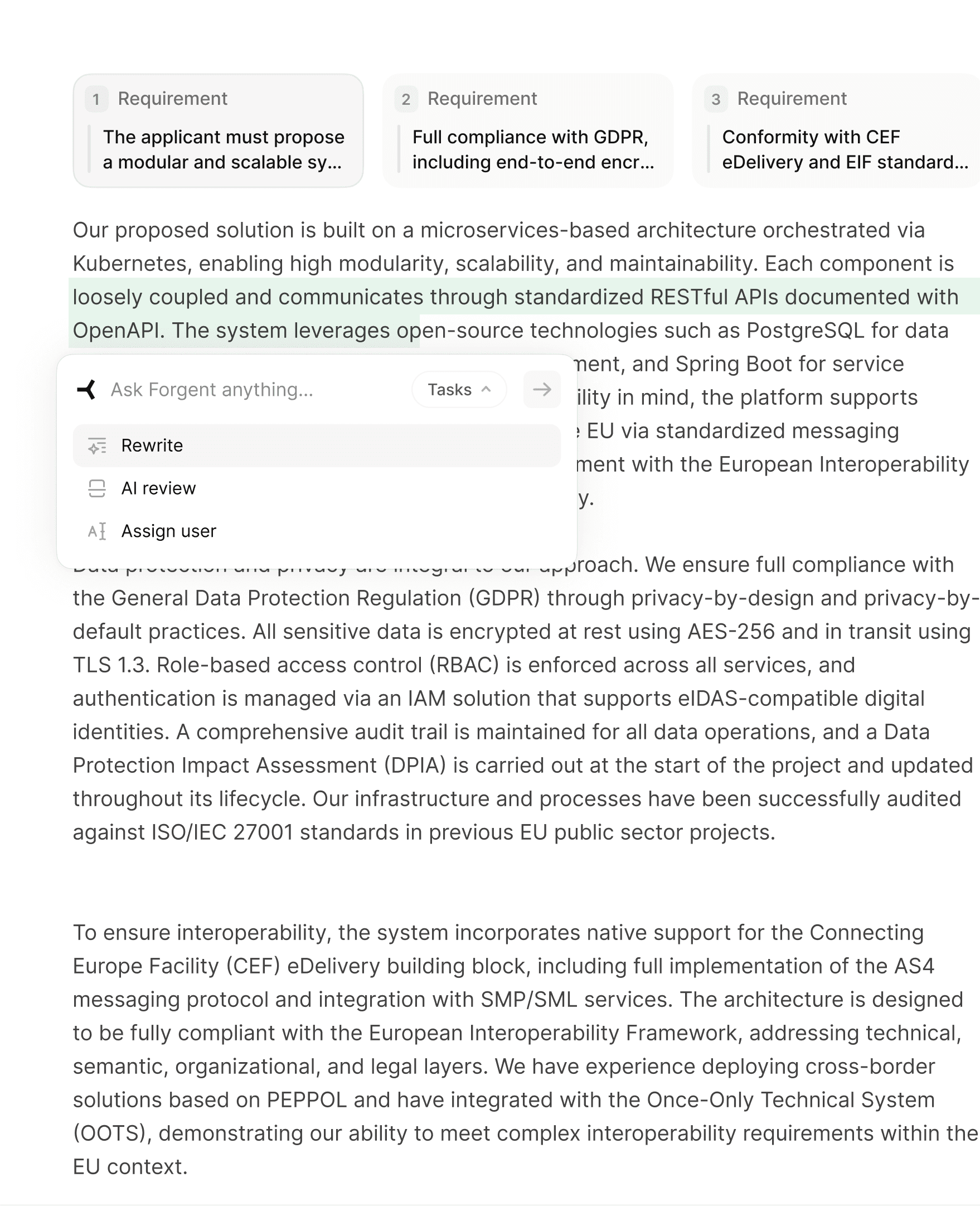 Entwickeln Sie Angebotsentwürfe, die alle Anforderungen abdecken und die technische Expertise Ihres Unternehmens einbeziehen. Unterstützt durch agentische KI.